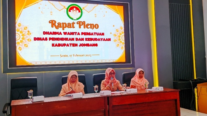Rapat pleno DWP Dinas Pendidikan dan Kebudayaan sekaligus diisi dengan kegiatan megengan sambut bulan Ramadhan, di Aula 2 Disdikbud Jombang Senin (17/2/2025)